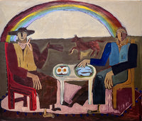 “Scenes from a Day Gone By", Kate Florence's most recent series, celebrates the simplicity of human connection through playful scenes of everyday life. In these large original paintings on canvas, Florence captures the fond memories of her childhood in the UK, reflecting on the places and moments that have shaped her. Working rapidly with fluid, intuitive brushstrokes, Florence stays present in her creative flow, allowing each piece to develop naturally. Her playful approach is central to her practice. Embracing a warm palette and experimenting with texture, Florence’s works tell stories with form and texture, inviting the viewer to consider the universal moments of everyday life that could be in the past, present, or future.