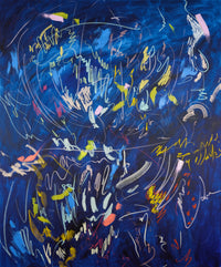 Satsuki Shibuya’s gestural, colorful paintings are a vibrant reflection of her unique artistic process, where movement, emotion, and thought converge. Each piece bursts with energy, the fluid strokes of color weaving together to form an abstract narrative that is both personal and universal. Her bold, expressive use of color conveys a depth of feeling, capturing moments of introspection, joy, and release.