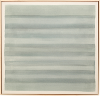 The current series by Ryan Alexandre Snow, titled Shapes Gradient, explores the realms of visual space, time, and balance through monochromatic shapes of color on natural canvas. With a seamless blend of abstract minimalism and organic textures, each painting invites viewers on a reflective journey of inner peace. Within this meditative series, Ryan masterfully orchestrates the interplay of minimal repeating elements, balancing form and layering, color and gradient. Through his intuitive brushstrokes, he captures the fluidity of motion, creating a suspended sense of time where past, present, and future converge. In making, there was an environmental focus on source materials including making his own paint from earth pigments collected near and far including foraged ochres from the mountains of Ojai to traditional indigos from Japan.