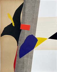 Ovska’s geometric abstract collages capture the essence of playful discovery, blending precision with spontaneity. Using found paper as the foundation, Ovska assembles each piece with an intuitive, rhythmic process that mirrors the unfettered joy of childlike exploration. The result is a dynamic interplay of shape, color, and texture, where each element feels simultaneously deliberate and serendipitous.
