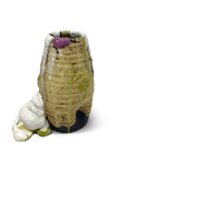 There is a visceral sense of life and time that emanates from Vince Palacios’ new Reticule Series. Using a method that leans heavily on improvisation, the process is high-touch, working from the inside out, as a root would form in the ground and push up and out. Instinctively, Palacios knows when to stop, when the true form of the piece emerges — it is a kind of alchemy that brings the piece to life from its original state. Across the series, the artist then imagines what the form would look like having been buried in a deep cave structure for hundreds of years. The crystalline surfaces and bold colors of geology have always drawn his attention, and the Reticules, in the end, look very much like something hewn from living cave rock.