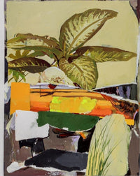 Recently featured in Architectural Digest, Michael Harnish begins his painting process by first making paper collages, utilizing imagery pulled from various sources including botanical books, fashion magazines, and commercial signage in his native Southern California. These collages then become the inspiration for his paintings—sometimes accurate depictions of the original collage, other times improvisation takes the lead once the brush hits the canvas. Flora takes a central role in Harnish’s works, with local cactus and agave played off tropical plants and grocery store orchids—combining a high/low aesthetic in an exhilarating synthesis. Harnish has exhibited widely through out Southern California and in London.
