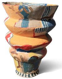 Using the slow, meditative process of coiling, Moore experimented with her clay forms, resulting in a fresh direction that emphasizes openness instead of closure. This change allows her to create stacked forms that transform her ceramics into functional pieces for domestic spaces, that the collector can live with and use in daily life.