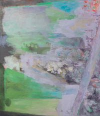 Ross’ palette, dominated by ethereal teals and greens, evokes nostalgia and otherworldliness. These recurring hues, reminiscent of oxidized patina on aged architecture, mirror cinema’s ability to transcend time. Through a process of layering, blending, and softening backgrounds against more insistent brushstrokes, Ross destabilizes familiar imagery, allowing ghostly echoes of the film to surface. Figures such as Dorothy may appear blurred, partially erased, or obscured, underscoring themes of fragility, repetition, and emotional dissociation. The result is a body of work that dissolves the boundaries between past and present, inviting viewers into a collective meditation on grief, memory, and healing.
