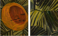 “Pindorama,” meaning “land of the palm trees,” is the name the Indigenous Tupi-Guarani people gave their homeland—long before it became Brazil. Miranda honors this history, drawing from the verses of Adélia Prado, the melodies of Tom Jobim, and the spirit of Brazil’s cultural tapestry. Each painting is an emotional landscape—bold, rhythmic, and alive—where orange is the sun’s embrace, light becomes movement, and every brushstroke echoes a distant song.