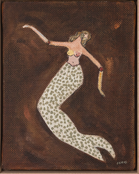 This series of original paintings embarks on an odyssey across the vastness of the ocean, where Brittany Ferns weaves a tapestry of folklore and symbols, tapping into humanity's enduring fascination with the mysteries of the deep. At the heart of her exploration are mermaids, ancient figures that have long represented transformation, serenity, and the raw, uninhibited power of the feminine form. The mermaid, in Ferns' hands, transcends cultural mythology, becoming a vessel for contemplating the depths of the human experience and our collective enchantment with the unknown.