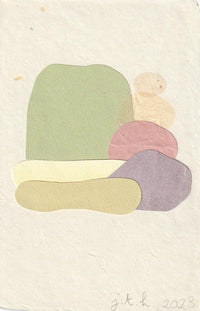 This series of works on paper titled Cocooning and debuted in 2011, explores Tagada Hoffbeck’s affinity with color and its ability to communicate positive feelings. It is at once an ongoing exploration and a daily practice. The artist’s color selection usually includes three methodical steps; daily observation of nature captured via analog photographs, the curation of small collages using photographs in complementary colors, and after consideration, the creation of final artworks.