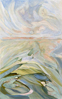 Her expansive pieces create a sense of vastness, drawing the viewer up to the peak of a mountain to gaze upon an "empty" landscape. Through these abstract works, she seems to ask, "What do you see? Where are we now? Have you been here before? How did it look the last time you were here?"