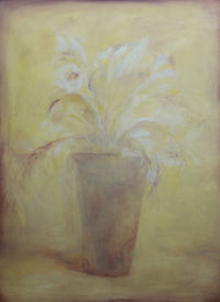 Yeon Kyung Park’s atmospheric still-life paintings come from Park’s desire to capture life’s overlooked moments. Inspired by quiet moments like the “feeling I felt in the moment of dawn”, Park aims to “express those daily short moments of peacefulness”. Park’s distinct painting style uses tone-on-tone color and a light hand to soften the paint gestures into dreamy, soft-edged forms – both representing an object and the abstract idea of a memory of a given moment.