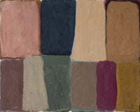 Colt Seager’s rich, moody abstract paintings explore tone, texture, and composition to create a visual language that feels both grounded and transcendent. His layered surfaces—built with sweeping gestures, tonal shifts, and subtle contrasts—invite quiet contemplation. Deeply influenced by the landscapes of the Midwest, from tree-lined forests to winding rivers and wide open prairies, his works often evoke a horizon just out of reach, a remembered place, or a dreamscape unfolding. Vertical and horizontal forms throughout the collection suggest both the natural sweep of the land and luminous pillars of sunlight filtering through trees, blending structure and spontaneity into a quiet, contemplative space.