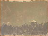 Cement dust, pigments, cotton. Framed in hemlock.