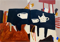 Patchwork Thoughts explores the deep connections between everyday scenes and the structured play of patterns, particularly the checkerboard motif. Each work draws viewers into seemingly familiar, domestic environments where people, animals, and objects subtly intertwine. The recurring checkerboard pattern acts as a symbol of the balance between order and chaos, routine and chance in daily life.