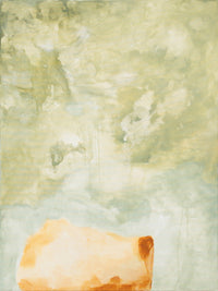 France's process is one of patience and surrender. Over weeks, she builds each work through staining, soaking, layering, and drying heavy raw canvas. Pigments seep and spread into organic forms, crystallizing into unique contours that echo geological surfaces — the grain of wood, the texture of cliff faces, desert ridges, or ocean foam. This marbled effect, consistent throughout France's body of work, mimics natural landforms as though seen from a great distance, while indistinct silhouettes emerge and fade, suggesting layered meanings and spiritual motifs.