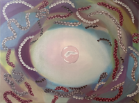Brianna Lance’s intricate paintings unfold like visual riddles, weaving together themes of rebirth, transformation, delicacy, and aggression through a distinctly Femme Surrealist lens. Her work invites viewers into a dreamlike world where symbols—flowers, candles, ripe fruit, and elaborate braids—hold layered meanings, revealing themselves gradually over time. Each composition is meticulously detailed, offering a rich interplay of softness and intensity, fragility and power.