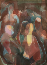 The Circle We Make gathers sixteen paintings that hold the thresholds of birth and early motherhood, rendered on both silk and raw canvas. Each material is chosen for its response to pigment — canvas grounding the mark, silk dispersing it with lightness — mirroring the shifting states of the body and mind in transition. Moving between abstraction and figuration, Jade allows forms to surface through repeated washes of color. Curves recall the arch of a back, a dark pool suggests shadowed hands, while soft edges evoke the way memory and sensation blur through exhaustion, closeness, and surrender.