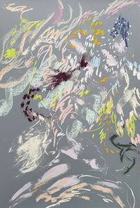 Satsuki Shibuya’s gestural, colorful paintings are a vibrant reflection of her unique artistic process, where movement, emotion, and thought converge. Each piece bursts with energy, the fluid strokes of color weaving together to form an abstract narrative that is both personal and universal. Her bold, expressive use of color conveys a depth of feeling, capturing moments of introspection, joy, and release.