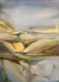 In her latest series, The Silver Sea, The Lace Border, Astri Styrkestad Haukaas is inspired by the poetic language of Rebecca Solnit to navigate the terrain between memory, landscape, and abstraction. The works are quiet yet expansive—emotional topographies that reflect Haukaas’s deep engagement with material, place, and the ephemeral. Layered washes, delicate marks, and open fields of color evoke both the stillness of a distant horizon and the intimacy of something felt but unspoken.