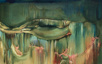 Haukaas’ process moves between intention and surrender. Ink slips and finds its own paths, while oil slows and anchors the surface, creating a rhythm between holding and release. Time feels layered within these paintings—personal, collective, and geological—pressing upward through form and color. Some works expand with light, while others fold inward with density and vibration, reflecting the nonlinear movement of thought. Together, the series invites viewers into a space between form and dissolution, where memory, perception, and presence unfold at their own pace.