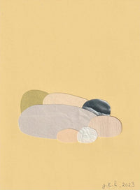 This series of works on paper titled Cocooning and debuted in 2011, explores Tagada Hoffbeck’s affinity with color and its ability to communicate positive feelings. It is at once an ongoing exploration and a daily practice. The artist’s color selection usually includes three methodical steps; daily observation of nature captured via analog photographs, the curation of small collages using photographs in complementary colors, and after consideration, the creation of final artworks.