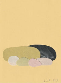 This series of works on paper titled Cocooning and debuted in 2011, explores Tagada Hoffbeck’s affinity with color and its ability to communicate positive feelings. It is at once an ongoing exploration and a daily practice. The artist’s color selection usually includes three methodical steps; daily observation of nature captured via analog photographs, the curation of small collages using photographs in complementary colors, and after consideration, the creation of final artworks.