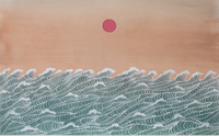 Lance’s creative process itself mirrors meditation—methodical and repetitive—each wave she paints becoming a testament to the mindfulness required in her craft. With watercolors, she continues to expand this series, introducing the sky as a counterpart to the sea. The sun, reduced to its most minimal, hovers above like a calm sentinel, while clouds with hidden faces drift through the compositions, adding a quiet, dreamlike quality. The interplay between these elements feels effortless, yet deeply intentional, creating a sense of harmony that transcends the visual. Like the ocean itself, Waves pulls the viewer into its depths, inviting reflection in the same slow, steady cadence that inspired its creation.