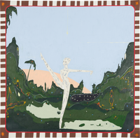 Anatole Heger’s work inhabits a liminal space where self and nature blur. Figures drift through otherworldly landscapes—sometimes dissolving, sometimes resisting subsumption. Heger’s approach to figuration is loose, fluid—an extension of the natural world rather than a departure from it. It is not clear whether they are moving through the space or being absorbed by it, whether they are seekers or subjects of the land’s own inscrutable will. The balance of power is always shifting, and the viewer, like the figures in his paintings, is left suspended in the ambiguity A muted palette heightens the quiet tension, stripping away excess to reveal something mythic yet deeply personal. “The unknown makes beauty immortal,” Heger has said. Recent exhibition include New Image Art, NADA Miami 2024. Recent aquisitions include the Rogath Family collection.