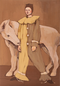 Irinka Talakhadze’s singular paintings conjure a world that is at once magical and uncanny—where the familiar tilts just beyond recognition. In her signature otherworldly style, figures emerge from layered hues and shifting light, their presence both intimate and elusive. Talakhadze’s brushwork blurs the boundaries between dream and reality, revealing a heightened sense of truth within distortion. Here, oddness is not an anomaly but a deeper kind of realism—one that lingers in the mind like a half-remembered vision, both unsettling and utterly absorbing.
