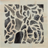 Michael DeSutter’s collages are playful, precise studies in color, form, and the quiet power of what’s left unsaid. Working with hand-cut shapes, DeSutter builds compositions that feel both spontaneous and intentional—balancing vibrant fields of color against expanses of negative space. It’s in these open areas that the work breathes, inviting the viewer to consider how absence shapes presence. Each collage becomes a conversation between solid and void, edge and interruption, where even the quietest moments hold compositional weight. In DeSutter’s hands, abstraction becomes an active practice in restraint, rhythm, and visual clarity.