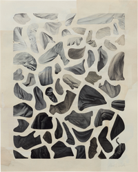 Michael DeSutter’s collages are playful, precise studies in color, form, and the quiet power of what’s left unsaid. Working with hand-cut shapes, DeSutter builds compositions that feel both spontaneous and intentional—balancing vibrant fields of color against expanses of negative space. It’s in these open areas that the work breathes, inviting the viewer to consider how absence shapes presence. Each collage becomes a conversation between solid and void, edge and interruption, where even the quietest moments hold compositional weight. In DeSutter’s hands, abstraction becomes an active practice in restraint, rhythm, and visual clarity.