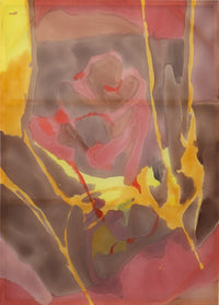 The Circle We Make gathers sixteen paintings that hold the thresholds of birth and early motherhood, rendered on both silk and raw canvas. Each material is chosen for its response to pigment — canvas grounding the mark, silk dispersing it with lightness — mirroring the shifting states of the body and mind in transition. Moving between abstraction and figuration, Jade allows forms to surface through repeated washes of color. Curves recall the arch of a back, a dark pool suggests shadowed hands, while soft edges evoke the way memory and sensation blur through exhaustion, closeness, and surrender.