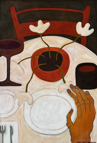 Cortney Herron reimagines domestic interiors as expansive landscapes, where the familiar transforms into something vast and deeply felt. Through warm, earthy tones, she considers the ways our intimate surroundings hold memory, emotion, and narrative—becoming terrains that are both lived and metaphorical.