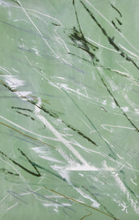 Arran Rahimian’s practice blends intuitive mark-making with intentional form, drawing deeply from the textures and transformations found in nature. His sources of inspiration range from weathered book covers and shifting light to the imprints left by people walking across canvases laid on the ground like carpets. Each work captures a fleeting convergence of movement and stillness, becoming a visual record of time’s subtle traces. Rahimian also revisits primitive gestural sketches, translating their raw colors and marks into expansive, large-scale compositions.