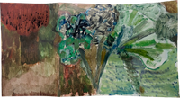 Shifting mercurially across registers of figuration, landscape, and abstraction, Alice Neave’s paintings are expressive manifestations of imaginal environments. Her haptic works constitute an experiential engagement with the transformational material properties of paint and canvas, revelling in a productive tension between the poetic and the visceral. Neave’s fictional realms are born from emotions as well as a hazy sense of a world beyond that which we see in our everyday perceptions. Populated by elements that percolate in from the artist’s subconscious or emerge from the paint during the process, nebulous scenes and narratives unfold like dreams through an internal and unidentifiable logic. This creative world-building results in painterly expanses that are fragile and delicate, in which spatiality is difficult to pin down. There is a strand of childlike naivety running through her oeuvre, both in her use of colour and in the sparsely picked out elements of figuration. Some works are populated by hazy figures that might be either human or animal, suggesting states of shapeshifting or metamorphosis. These qualities imbue Neave’s paintings with a ghostly lightness, as half-told narratives echo hauntingly across the picture plane.