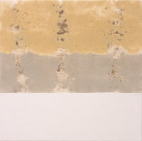 Mineral dust and pigments on raw cotton. Custom framed.