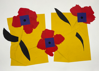 Ovska’s geometric abstract collages capture the essence of playful discovery, blending precision with spontaneity. Using found paper as the foundation, Ovska assembles each piece with an intuitive, rhythmic process that mirrors the unfettered joy of childlike exploration. The result is a dynamic interplay of shape, color, and texture, where each element feels simultaneously deliberate and serendipitous.